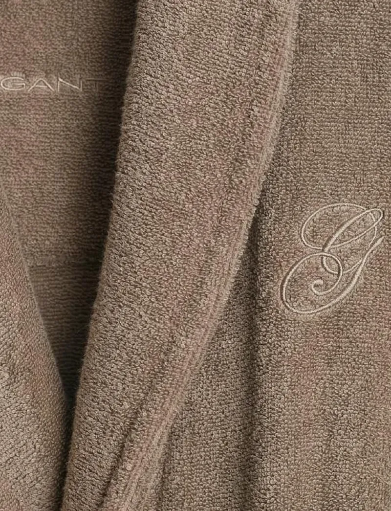 This robe from Gant is crafted in a comfortable, terry cloth from 100% organic cotton. The design is cut for a unisex fit and features a thick collar, waist belt and two front pockets. It is also embellished with an elegant G embroidery placed at the chest.