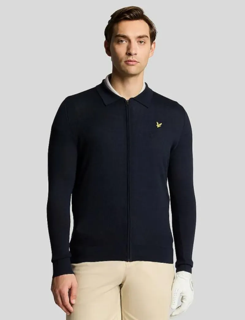 Lyle & Scott Sport Lightweight Knitted Collared Cardigan – Stickat Z271 DARK NAVY Sale