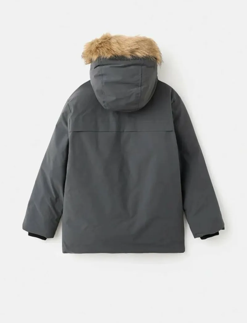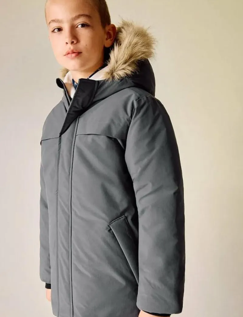 - Huva med kant av fuskpäls