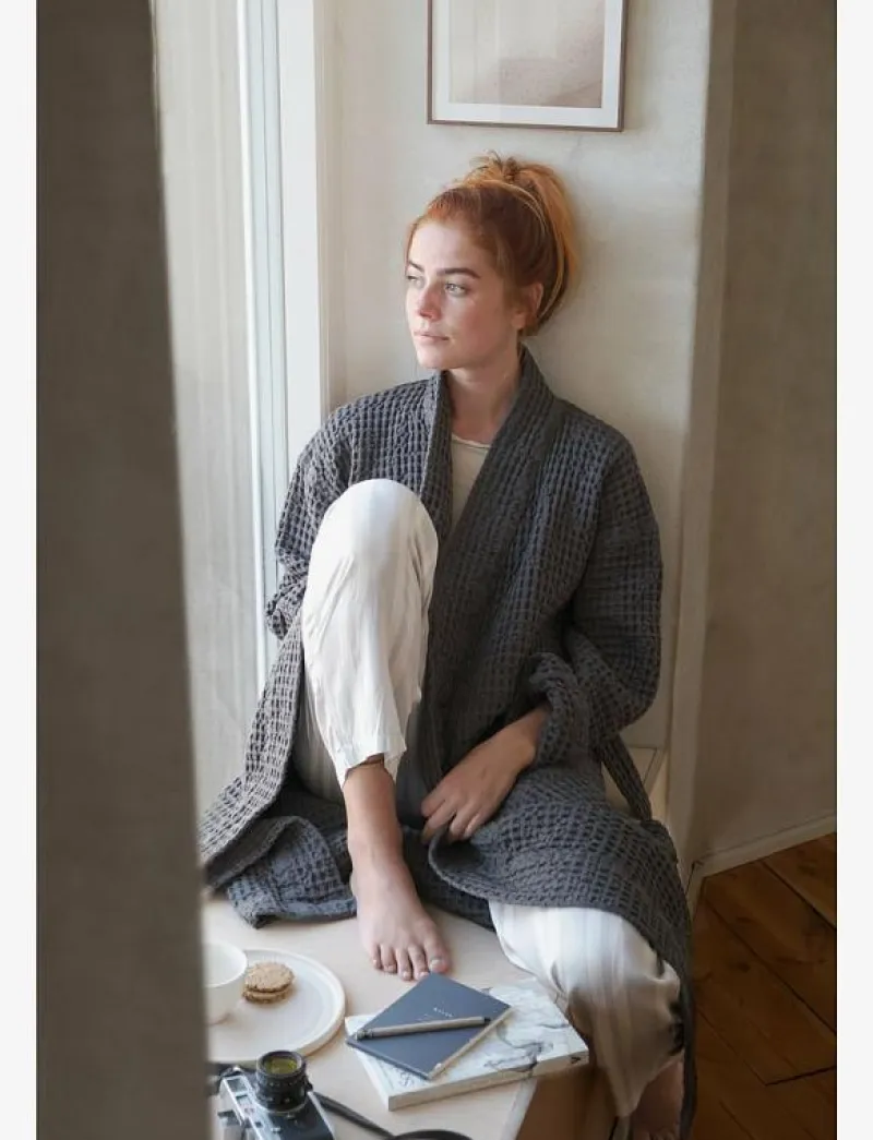 The Organic Company Big Waffle Bathrobe – Morgonrock DARK GREY New