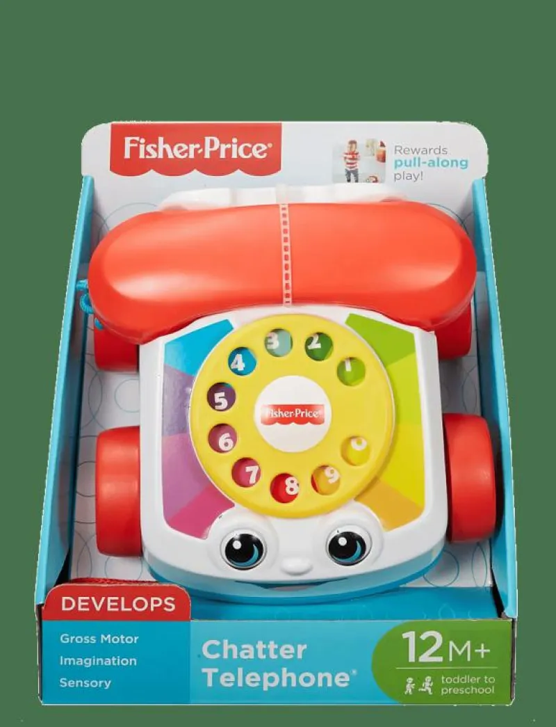 - Barnen kan sitta och leka eller dra omkring leksakstelefonenchatter telephone har roliga ringande ljud och ögon som rör sig upp och nerlär barnet siffrorna 0-9uppmuntrar till tidiga rollspel när barnen låtsas ”ringa”för bebisar och småbarn som är 12 månader och äldre