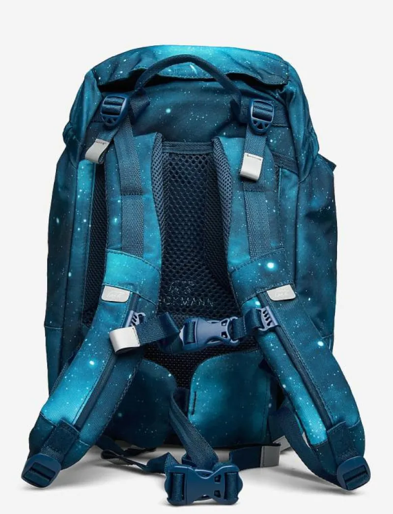 - School backpack Classic 22 liter Gym, hiking backpack that can be attached to the school backpack or used separately Single section pencil case with content Oval pencil case Rain cover in the top flap Mini backpack with buttons