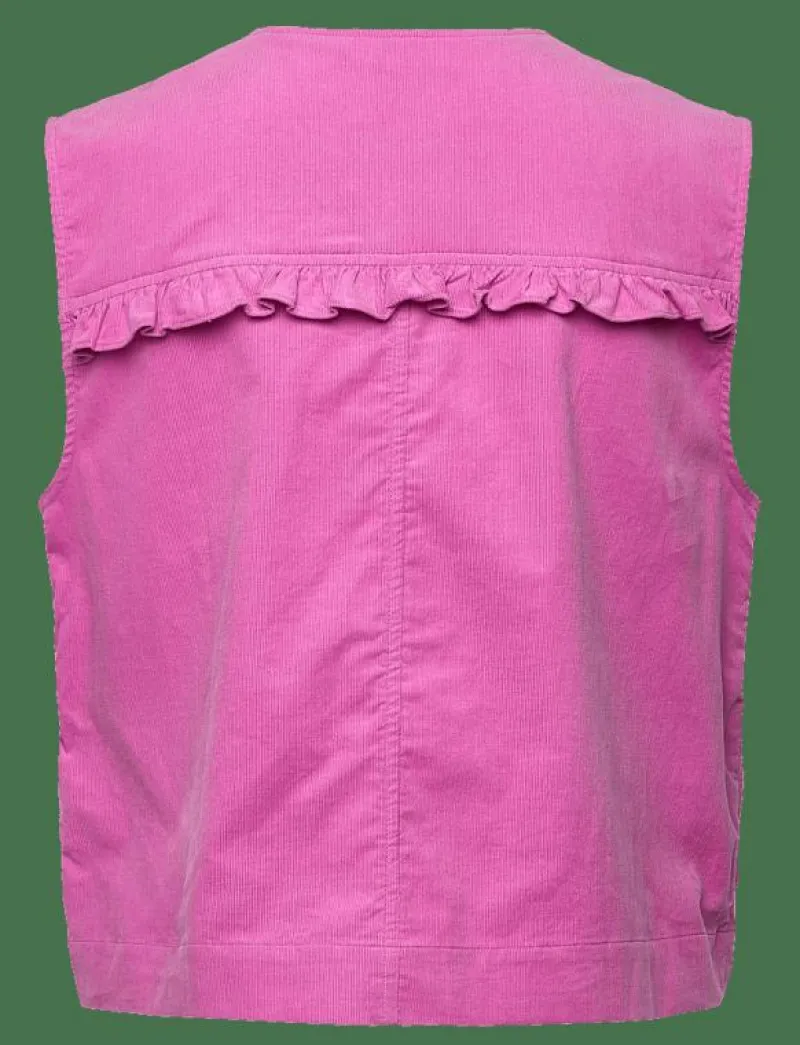 - Har bröstfickor med volangkanter